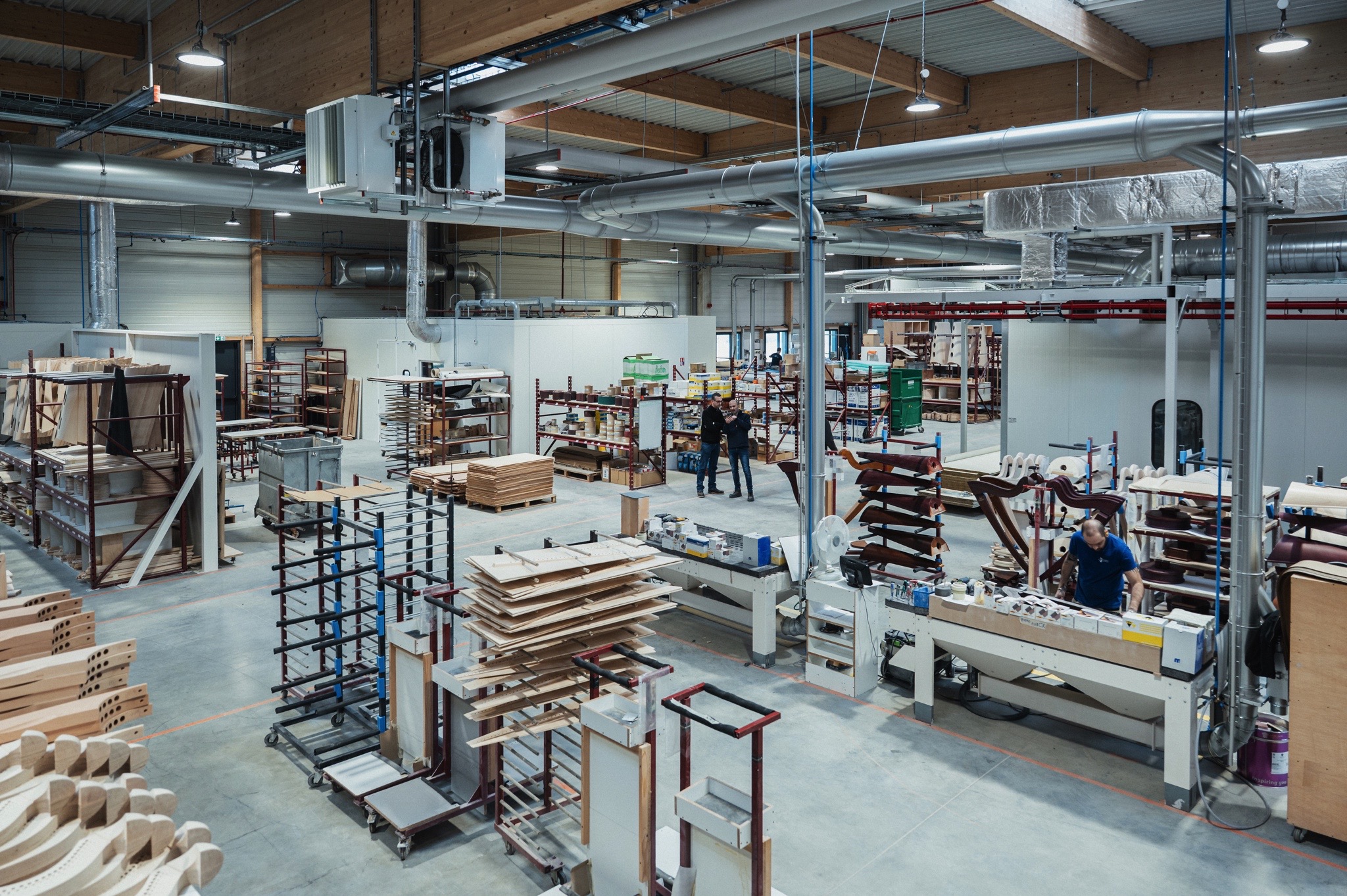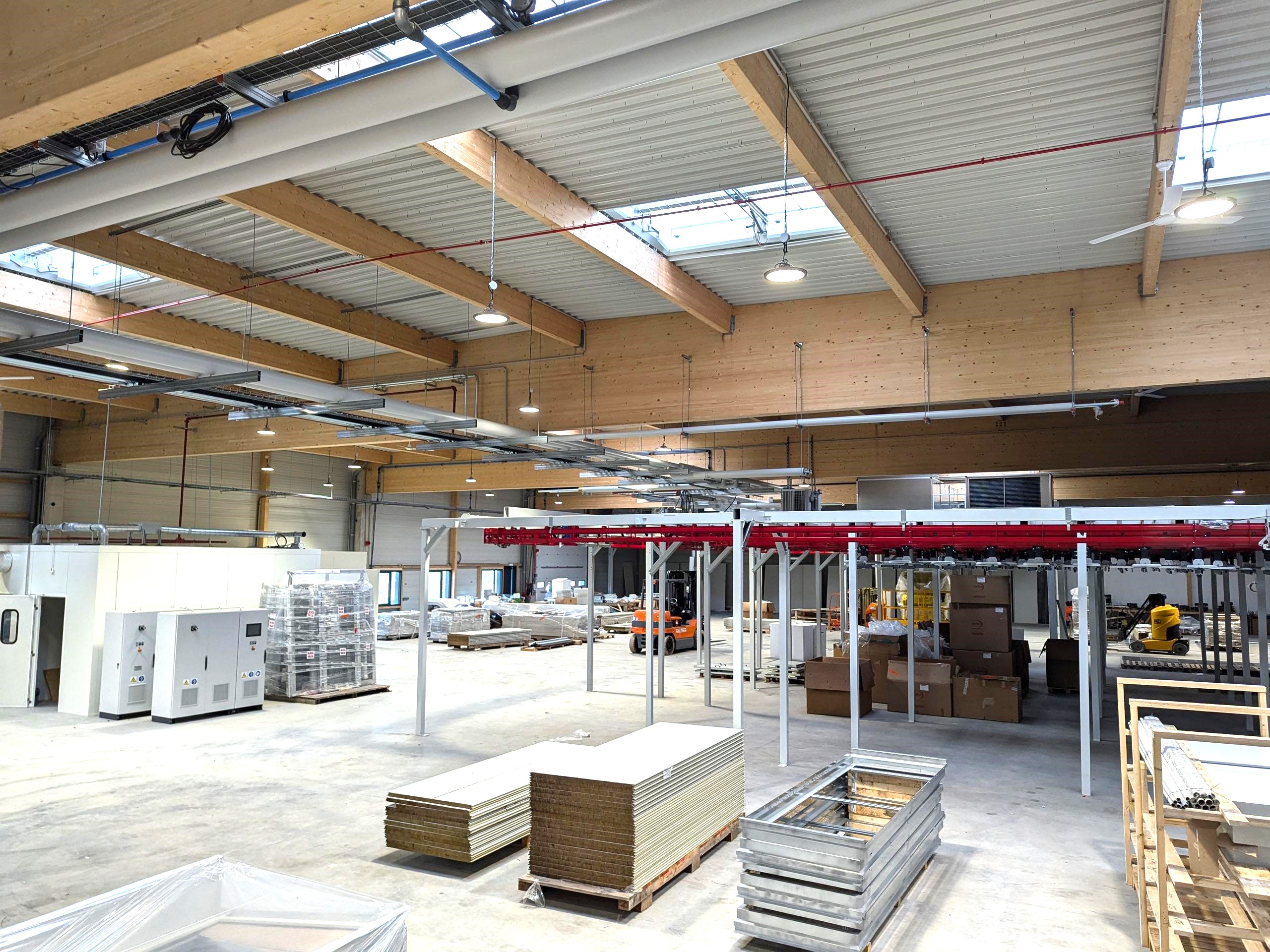 Dans cette extension, intégration d’un haut niveau de process avec l’aménagement de l’atelier menuiserie bois, de l’atelier peinture, et d’une chaufferie de 1MW. En complément, adaptation du système constructif et des aménagements pour respecter les exigences de 3 rubriques ICPE (Installation Classée pour la Protection de l’Environnement).